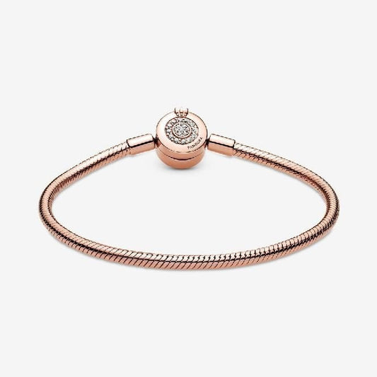 Moments Rose Sparkling Crown O Snake Chain Bracelet, 20cm