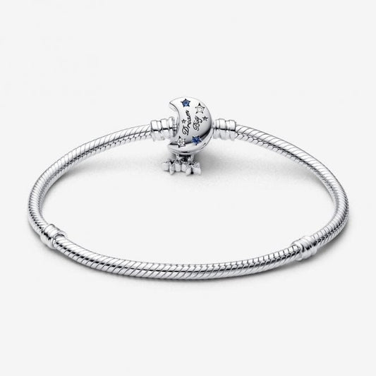 Moments Sparkling Moon Clasp Snake Chain Bracelet, 19cm