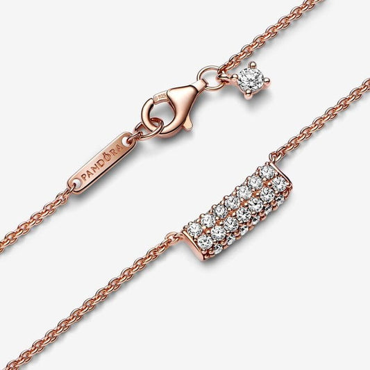 Rose Timeless Pave Double-Row Bar Collier Necklace, 45cm