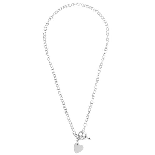 Silver Engravable Heart T-Bar Pendant Necklace, 45cm