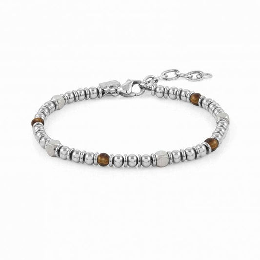 Steel and Brown Tiger's Eye Agate Bead Bracelet