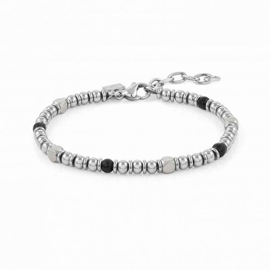 Sold outVendor:NominationSteel and Black Agate Bead Bracelet