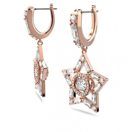 Stella Star Hoop Earrings with White Crystal in Rose Gold