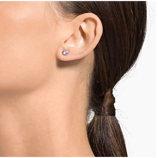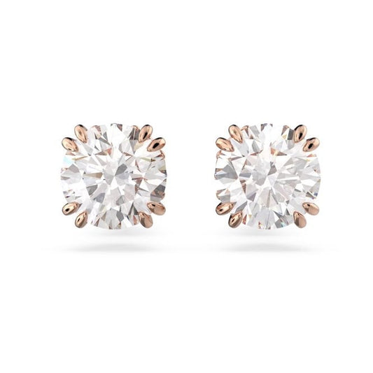 Stilla Stud Earrings with Round-Cut White Crystal in Rose Gold