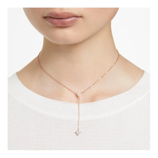Stilla Y Necklace with Triangle-Cut White Crystal in Rose Gold