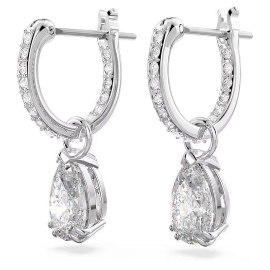 Stilla Hoop Earrings with Pear-Cut White Crystal in Rhodium Silver