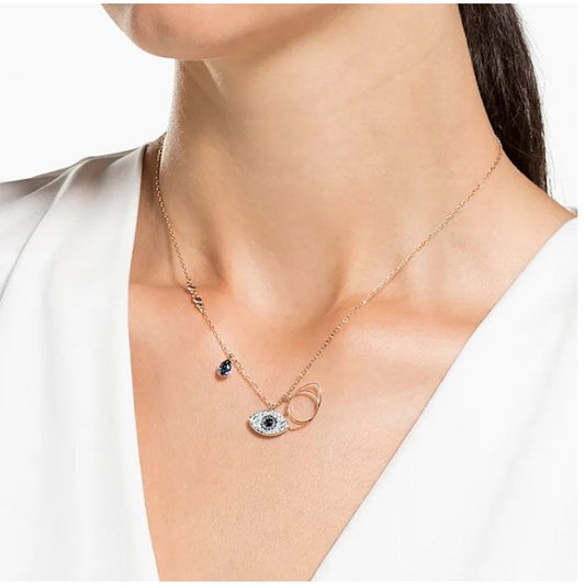 Symbolic Evil Eye Blue Crystal Pendant Necklace in Rhodium Silver