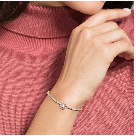 Una Bracelet with Round-Cut White Crystal Pave in Rhodium Silver