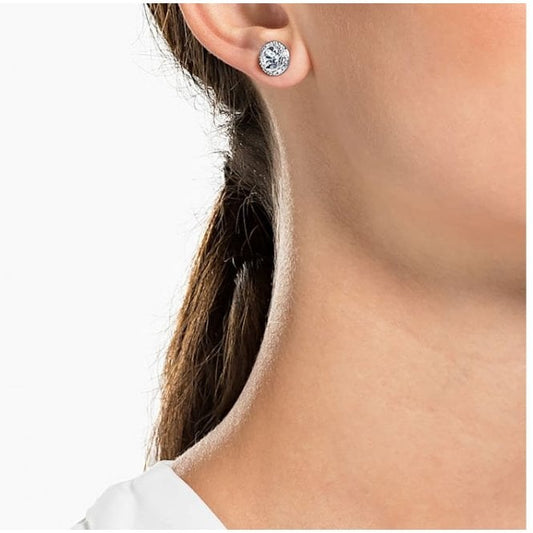 Una Angelic Stud Earrings with Round-Cut White Crystal Pave in Rhodium Silver
