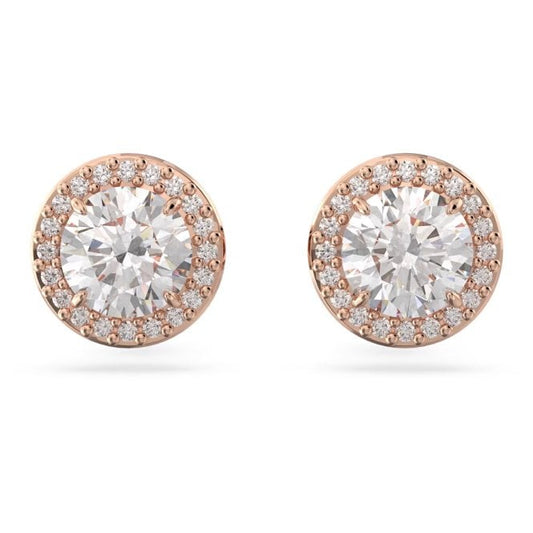 Una Angelic Stud Earrings with Round-Cut White Crystal Pave in Rose Gold