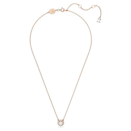 Una Angelic Pendant Necklace with Round-Cut White Crystal Pave in Rose Gold