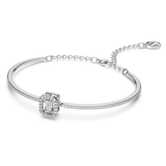 Una Bangle with Octagon-Cut White Crystal in Rhodium Silver