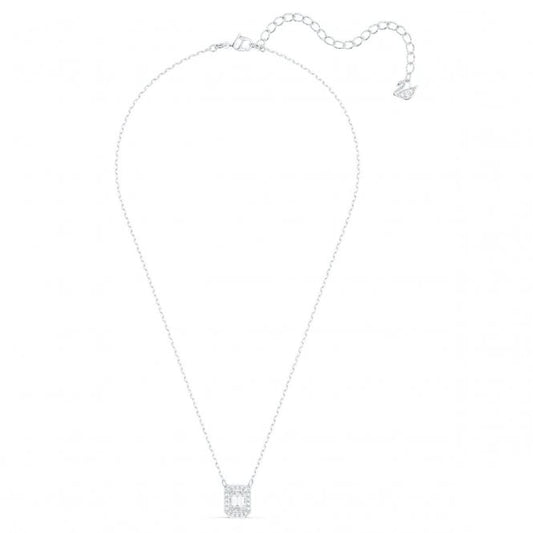 Una Pendant Necklace with Octagon-Cut White Crystal in Rhodium Silver