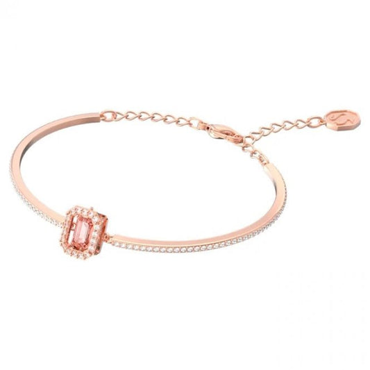 Una Octagon Cut Bangle with Pink Crystal in Rose Gold