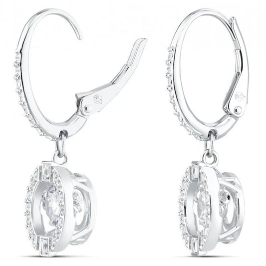 Una Drop Earrings with Round-Cut White Crystal in Rhodium Silver