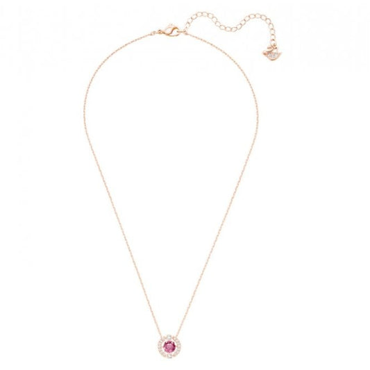Una Red Crystal Round Pendant Necklace in Rose Gold