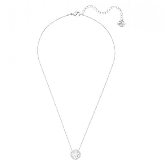Una White Crystal Round Pendant Necklace in Rhodium Silver