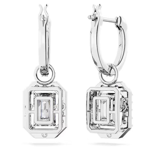 Una Drop Earrings with Octagon-Cut White Crystal in Rhodium Silver