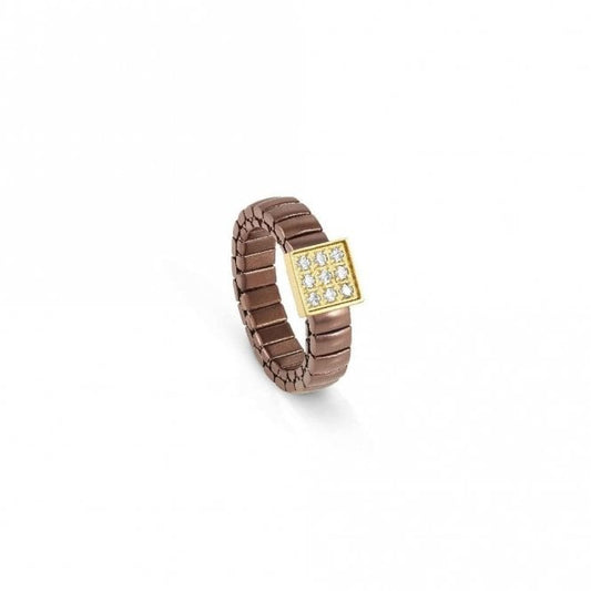 XTE Life Steel & CZ Chocolate Square Ring, XSmall