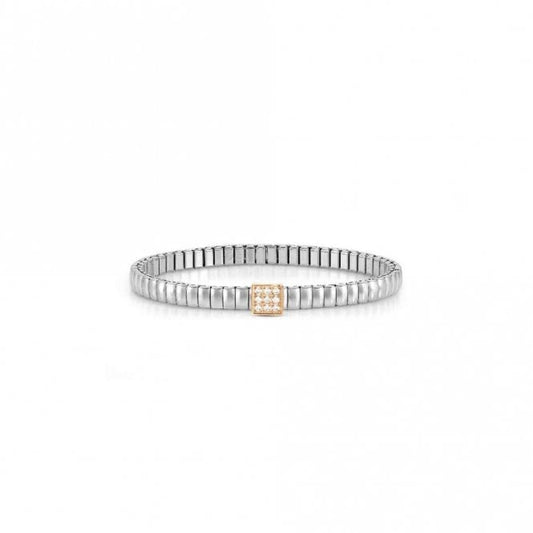 XTE Life Steel & CZ Rose Gold Square Bracelet, 18cm