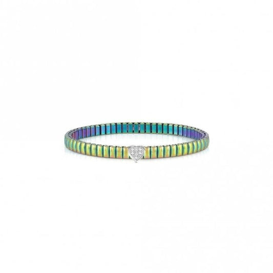 XTE Life Steel & CZ Multicoloured Heart Bracelet, 18cm
