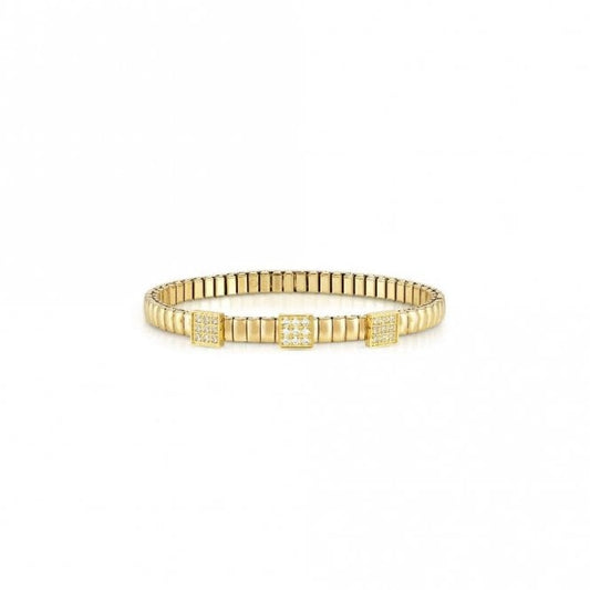 XTE Life Steel & CZ Yellow Gold Pave Square Bracelet, 18cm