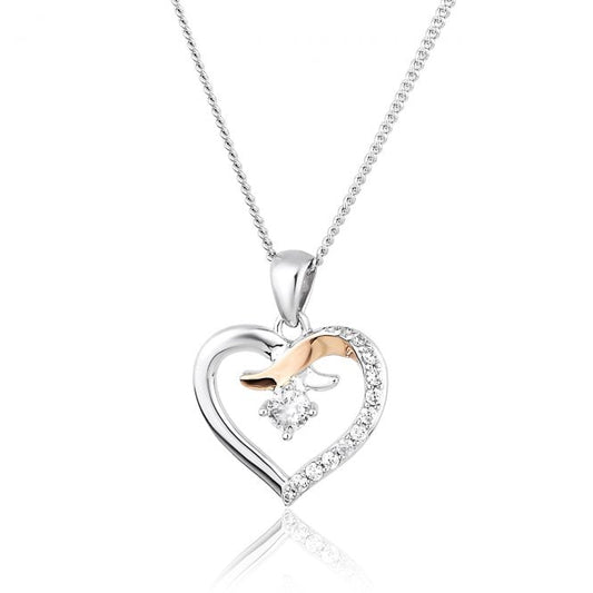 Cariad Silver and Diamond Large Heart Pendant Necklace