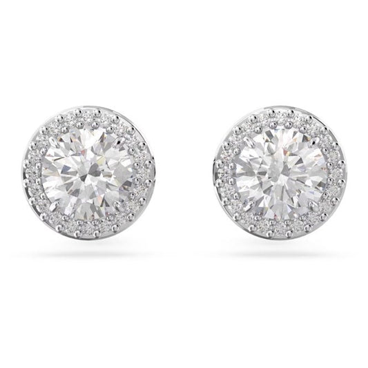 Una Angelic Stud Earrings with Round-Cut White Crystal Pave in Rhodium Silver