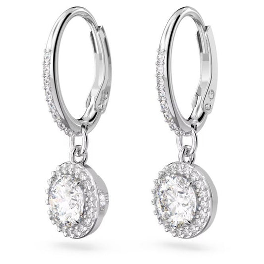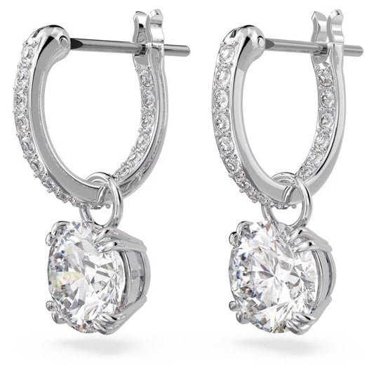 Stilla Drop Earrings with Round-Cut White Crystal in Rhodium Silver