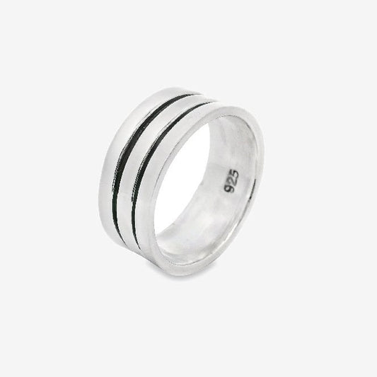 Oxidised Silver Double Blackened Striped Ring, Size 67.5