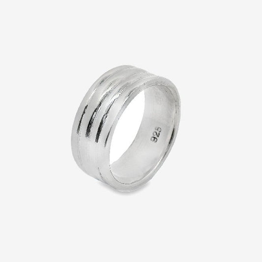 Oxidised Silver Double Blackened Striped Ring, Size 69