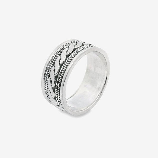 Oxidised Silver Blackened Plaited Ring, Size 57.5