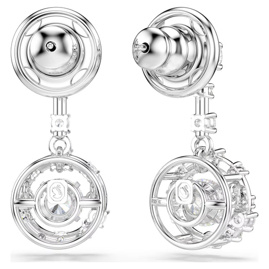 Constella Dancing Drop Earrings with Round-Cut White Crystal in Rhodium Silver