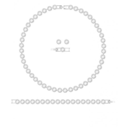 Una Angelic Round-Cut Complete Set with White Crystal in Rhodium Silver