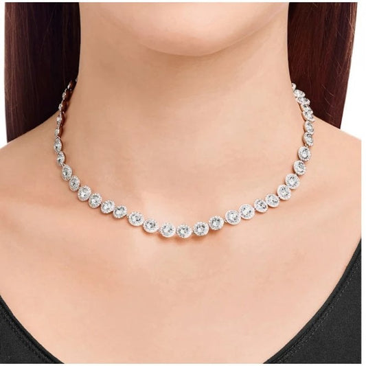 Una Angelic All-Around White Crystal Pendant Necklace in Rhodium Silver