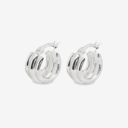 Silver Triple Band Hoop Earrings, 12mm Small