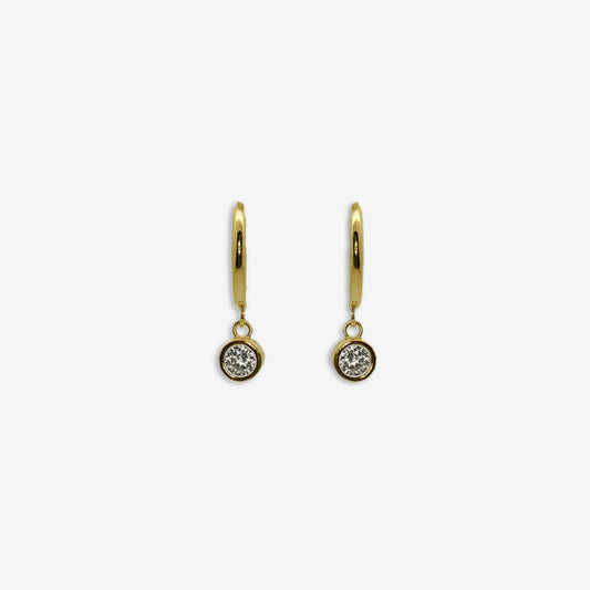 Gold Small CZ Pendant Hoop Earrings