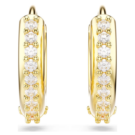 Matrix Hoop Earrings with Round-Cut White Crystal in Gold