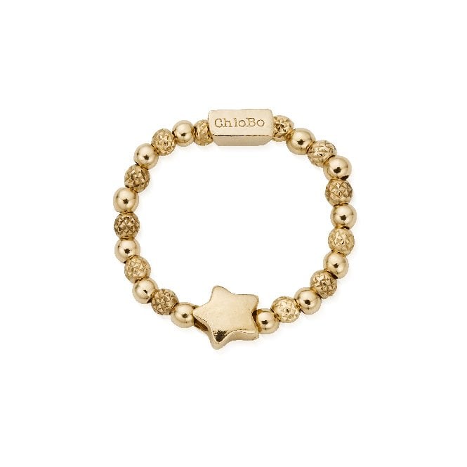 Let this small size Gold Inset Star Ring be your little reminder to trust the journey. This dainty beauty features a sparkling star, crafted using 18kt gold plated silver, a symbol of hope and guidance, nestled amongst smooth and patterned beads. It's the perfect piece to add a touch of celestial sparkle to your ChloBo Gold Rings stack and keep you inspired on your life's adventure.