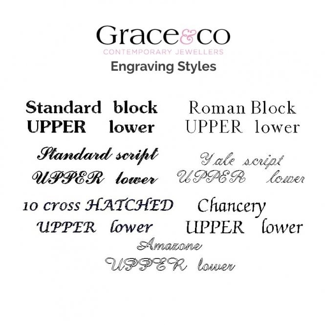 The Grace & Co Scribble Collection is the engravable range of jewellery which tells your story. Every bracelet and necklace is hand-engraved with love by our goldsmith in Leicestershire allowing you to celebrate life, friendship and, greatest of all, love. ENGRAVING - Fonts may vary slightly due to space available on the item.