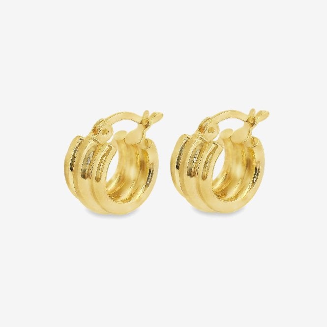 Grace & Co Gold Triple Band Hoop Earrings, 12mm Small