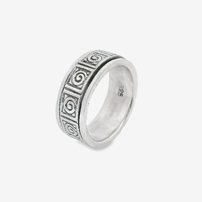 Where mystery meets intrigue. This captivating ring from The Men's Collection by Grace & Co features swirling patterns, handcrafted from oxidised 925 sterling silver. The darkened finish adds depth and dimension, creating a ring that's both hypnotic and undeniably cool. The 8mm width ensures it gets noticed, making a statement without being overpowering. Handcrafted for the man who walks to the beat of his own drum. Available in UK size Y (EU size 67.5).
