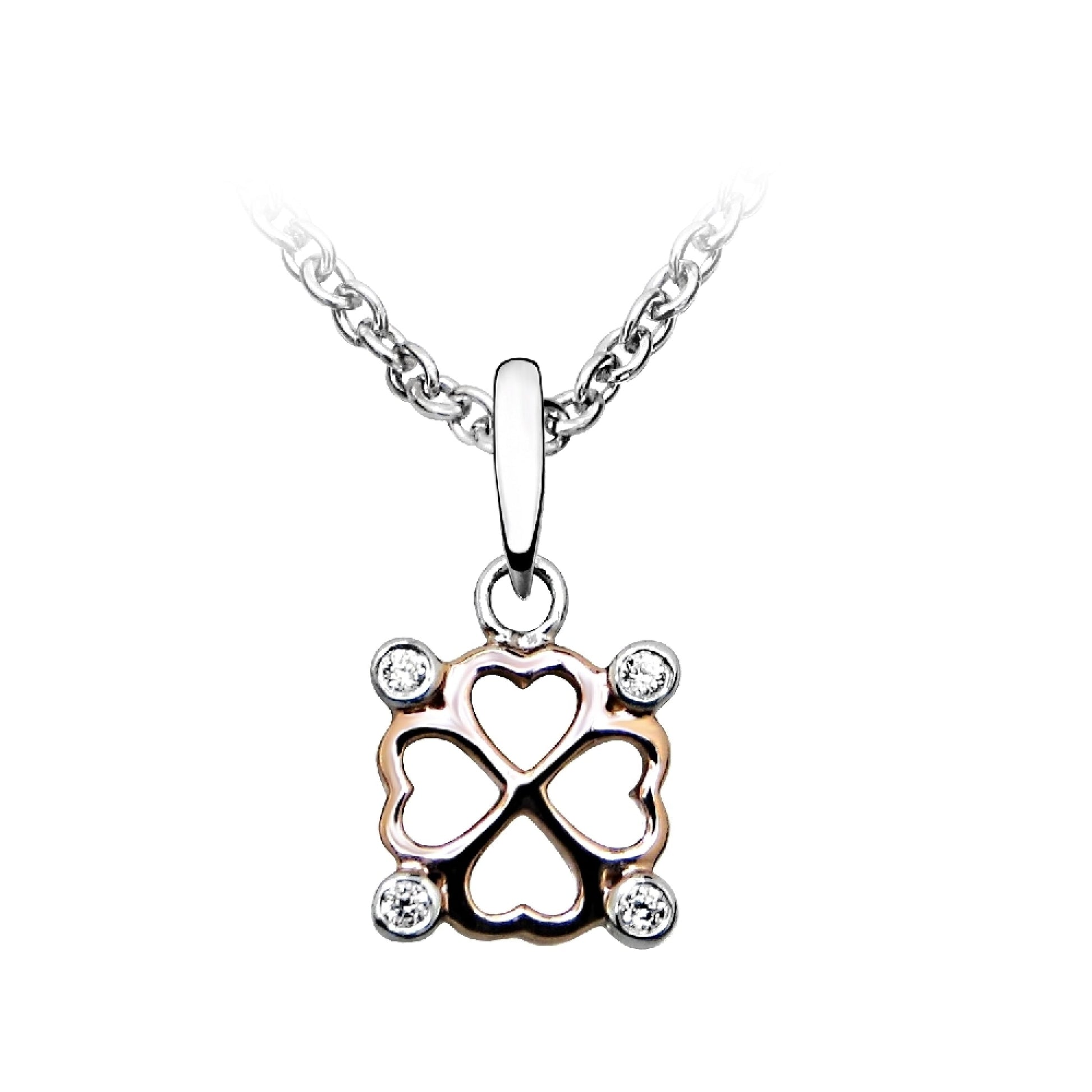 Grace & Co Rose Gold Vermeil, Silver & CZ Clover Pendant Necklace