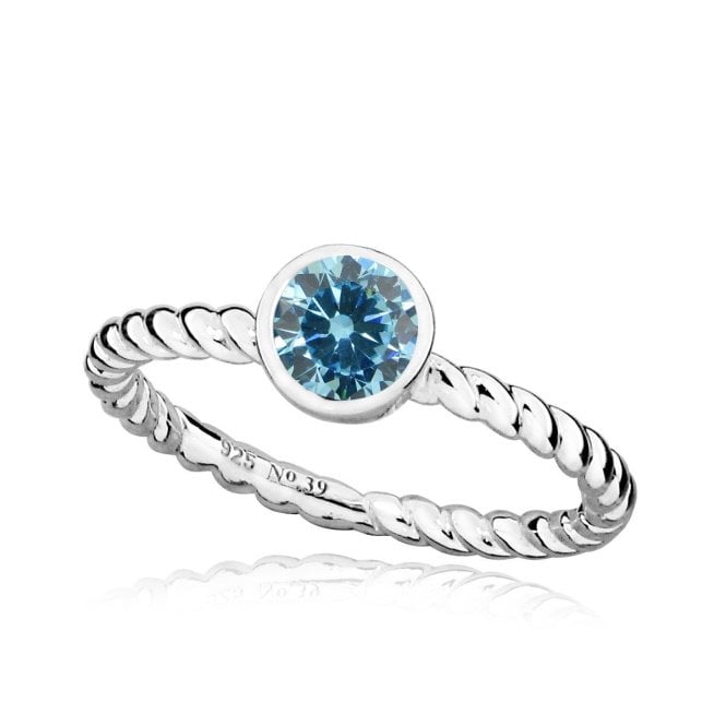 Here we have a slim rope-style band, which makes this birthstone ring great for stacking, comes in a size P and is crafted using sterling silver delightfully finished with a sparkling, faceted aquamarine zirconia crystal stone, making this an ideal present for anyone with a March birthday. Each of these March Birthstone rings is accompanied with our own Grace & Co gift packaging and comes with a 24 month warranty.