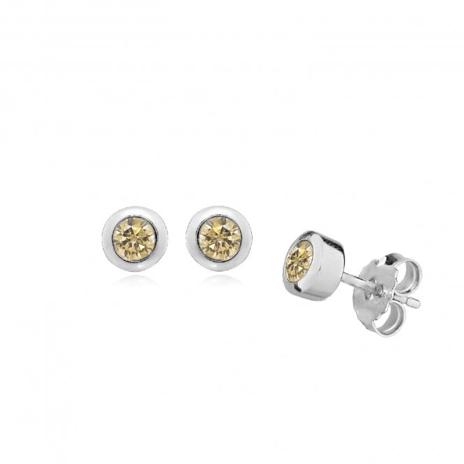 Grace & Co Silver and Champagne CZ November Birthstone Stud Earrings
