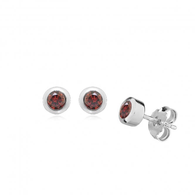 Grace & Co Silver and Red CZ July Birthstone Stud Earrings