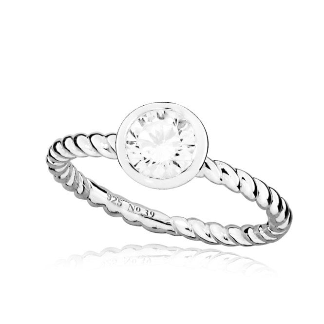 Grace & Co Silver and White April Birthstone Ring, Size P