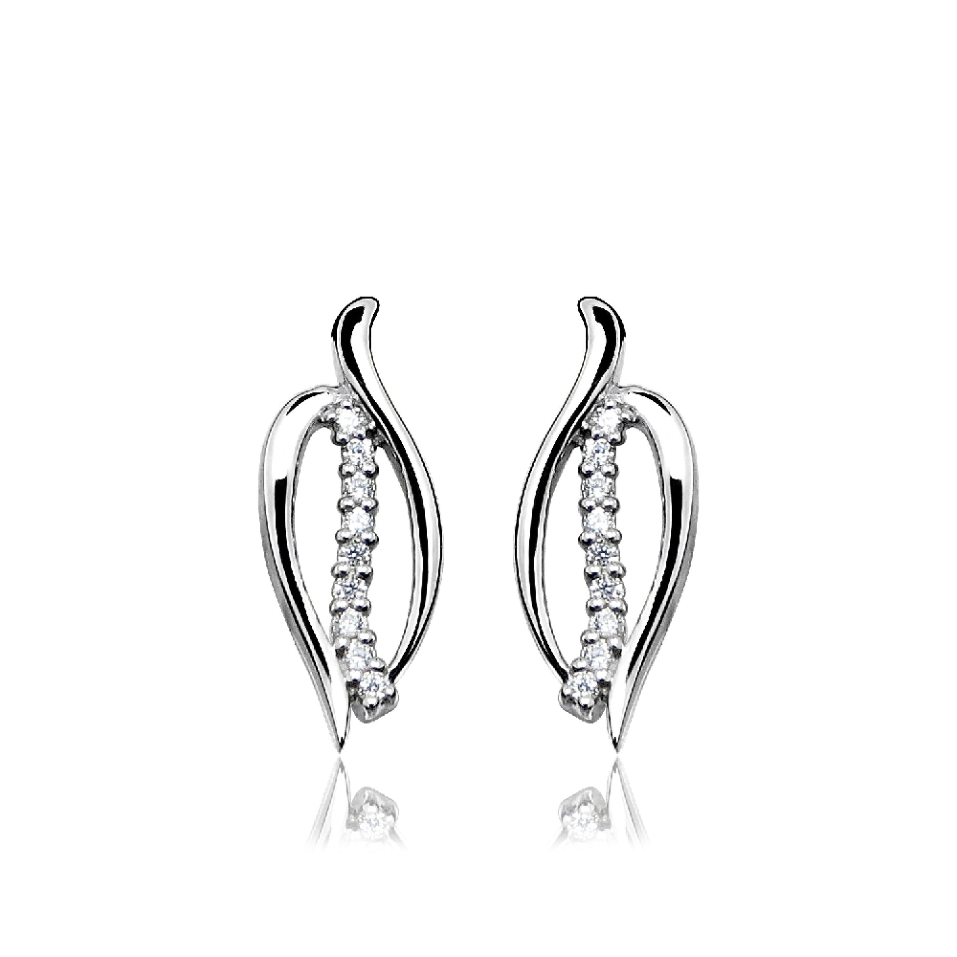 Grace & Co Silver & CZ Open Leaf Stud Earrings