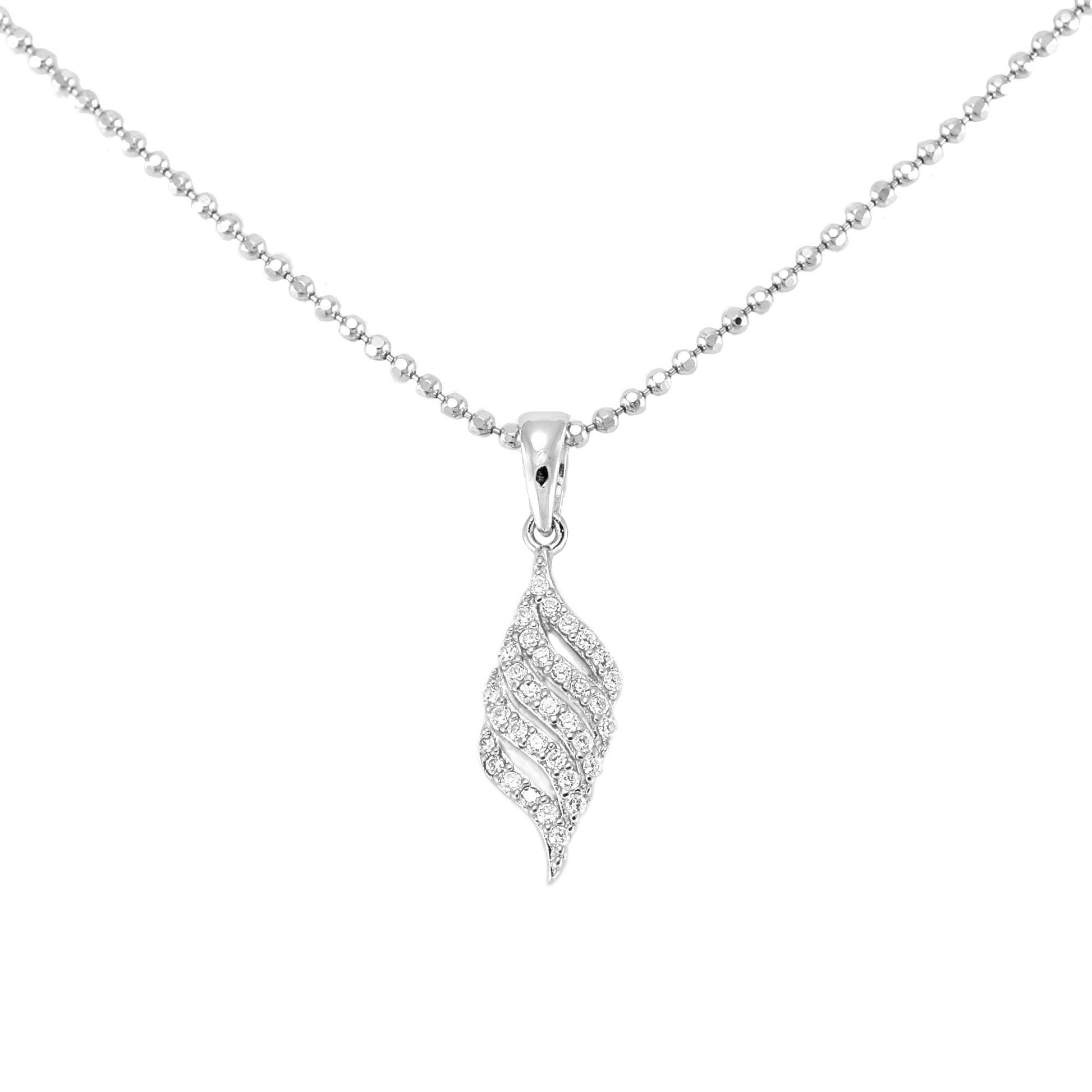 Grace & Co Silver & CZ Pave Leaf Pendant Necklace