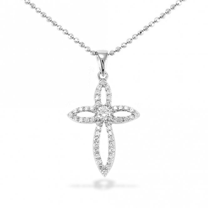 Grace & Co Silver & CZ Pave Open Cross Pendant Necklace